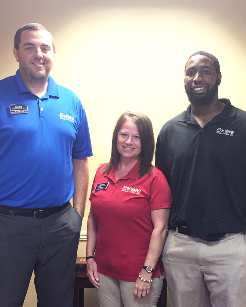 Physical Therapists Brandon Addison and Hans Rice, II, along with Office Coordinator CC Vickers, provide great care in a friendly and safe environment.