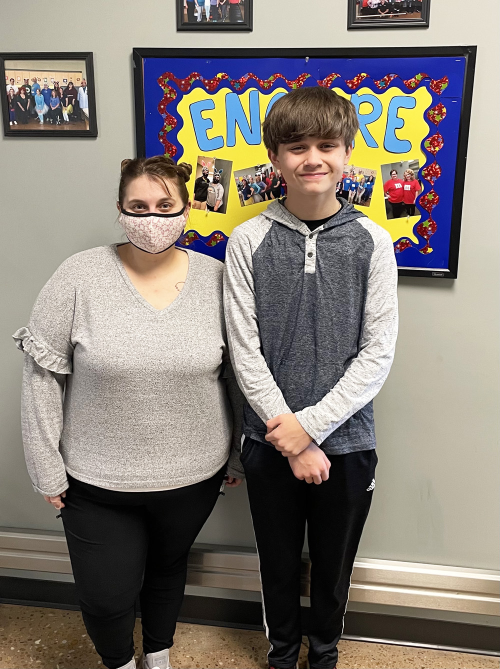 Kale is pictured here with Encore Rehabilitation Occupational Therapist Mary Scalisi.