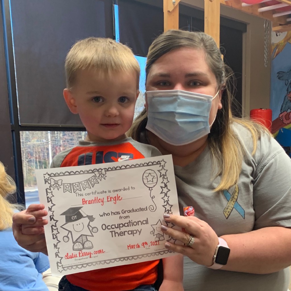 Pictured is Brantley and Occupational Therapy Assistant Leslie Perry.