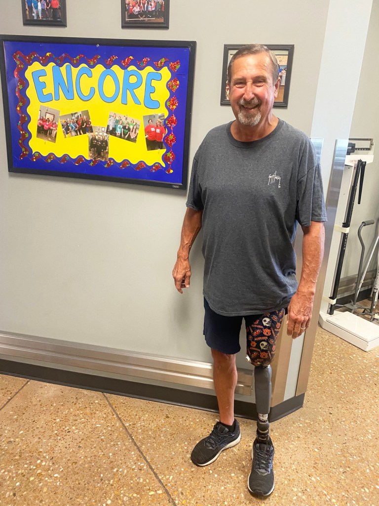 After a long history of decreased blood flow flow in his left lower extremity caused by peripheral vascular disease, Mr. Johnson ultimately had to have surgery to amputate his lower extremity above his knee. Because of the severity of the surgery, he had to begin going to Physical Therapy to learn to walk with a prosthesis. He chose Encore after it was recommended to him by his inpatient rehabilitation facility.