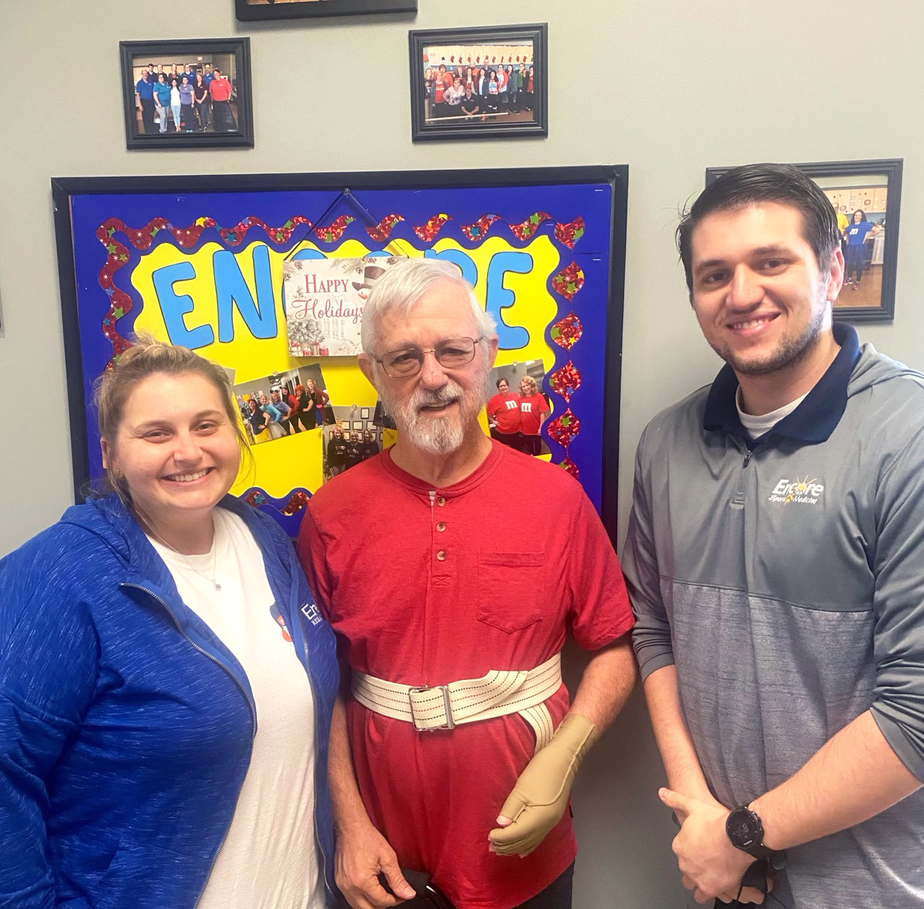 In July of 2021, Buddy Cook was diagnosed with a CVA or stroke. “I was unable to use my left arm and had trouble walking and with my balance,” he says. Mr. Cook spent two months in inpatient rehabilitation before coming to Encore Rehabilitation-Dothan. He was referred to Encore by his doctor and had heard several people highly recommend Encore for his therapy.