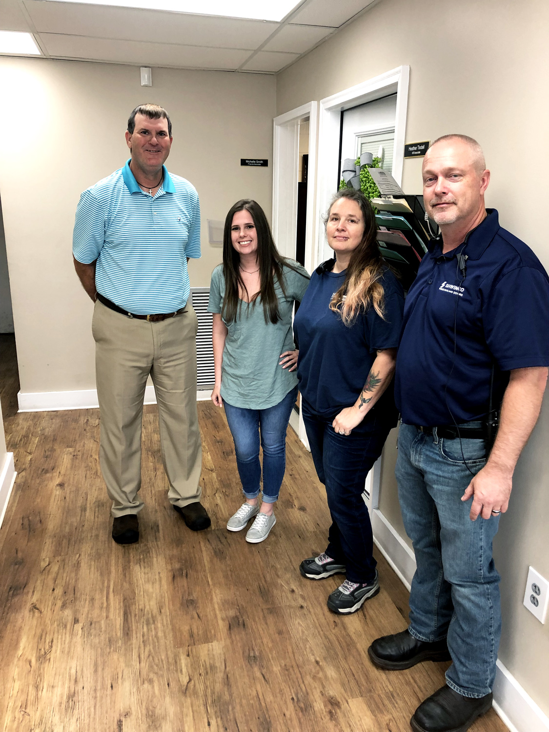 The training was conducted by Encore Rehabilitation Regional Director Jeremy Boswell. Jeremy is pictured here with Shwinco employees: Human Resources Director Heather Tindell, Safety Director Sarah York, and Plant Supervisor Bill Meade.