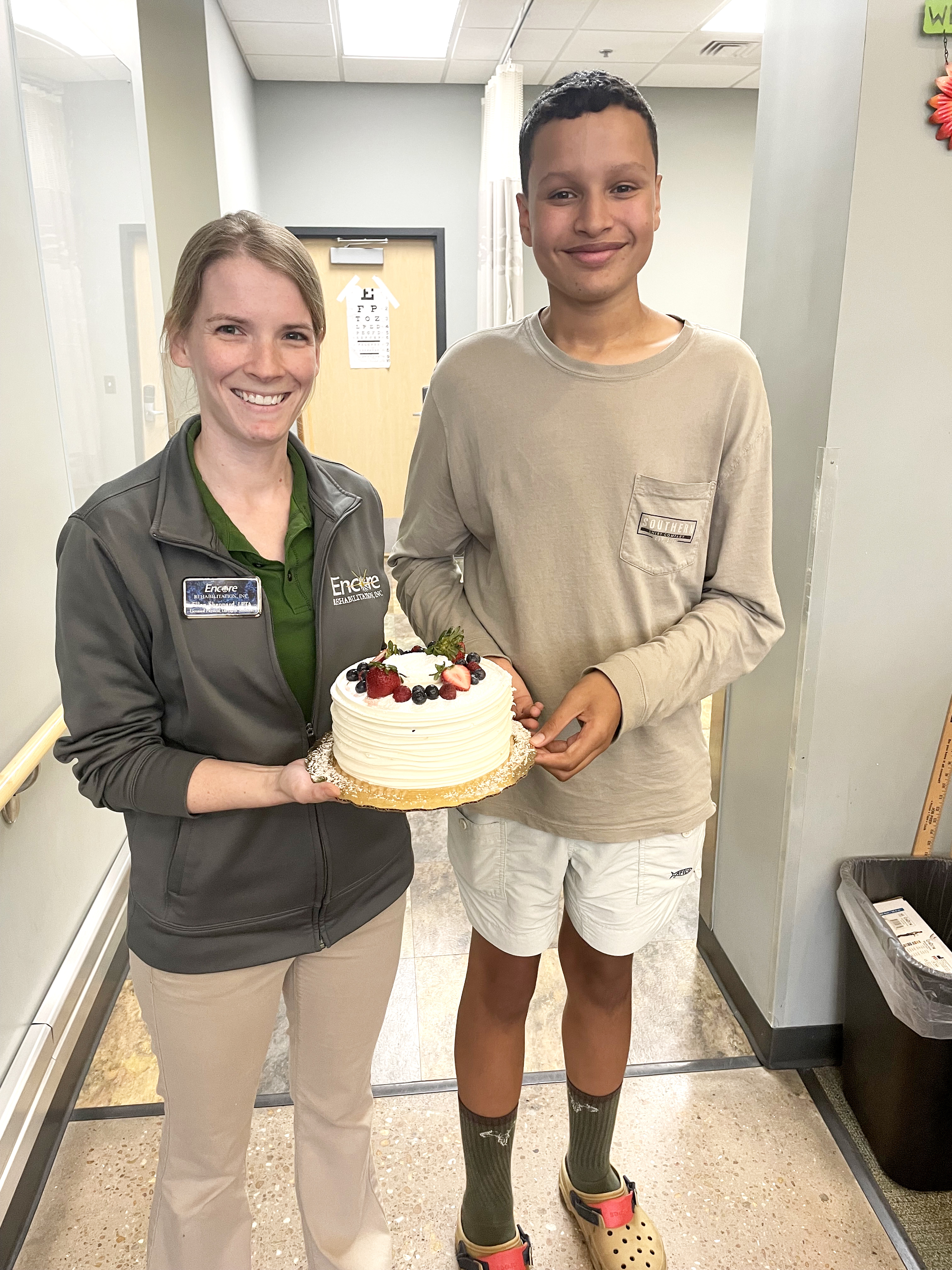 After having a dislocation injury to his knee during PE, Ty was referred to Encore by his doctor. Ty stated his favorite part of therapy was having fun and talking with the therapists. Ty and his mom have both been pleased with everyone and the services received while at Encore.