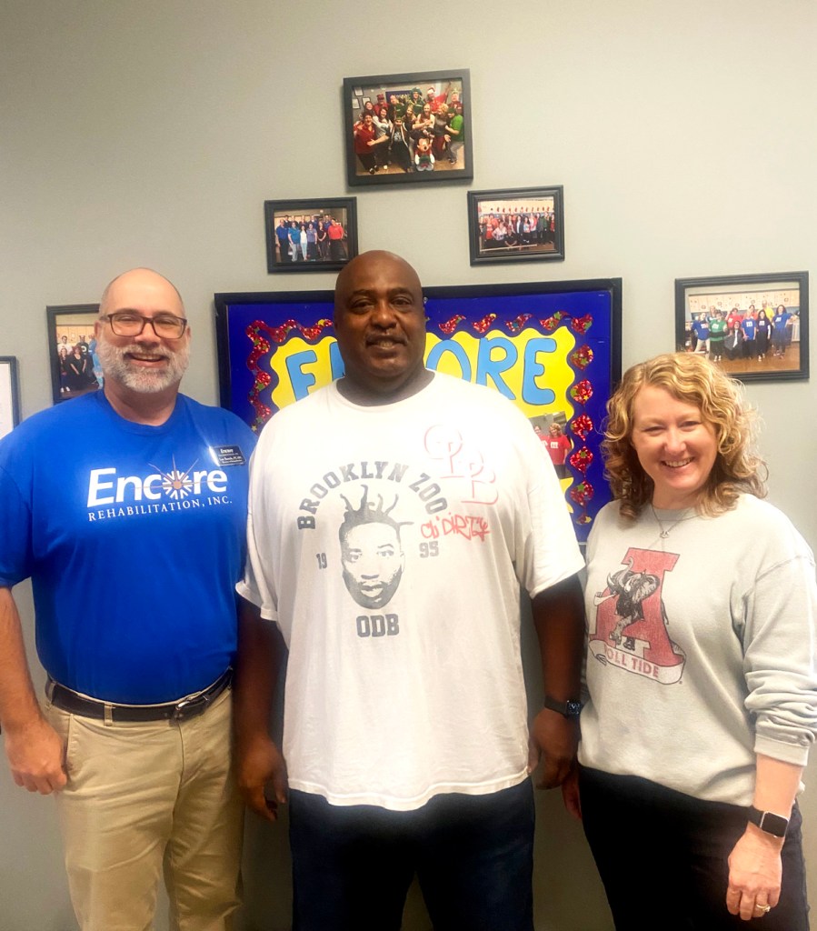 Mr. Ricky Collins had ruptured bilateral quad tendons and received a double quad repair surgery. When he began rehab with Encore Rehabilitation-Dothan, he was in a wheelchair. Now he is walking again without assistance!