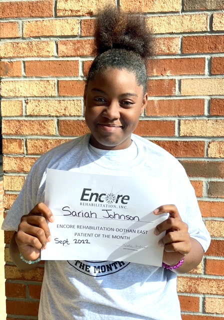 Congratulations to Athlete of the Month Sariah Johnson with Encore Rehabilitation-Dothan East!