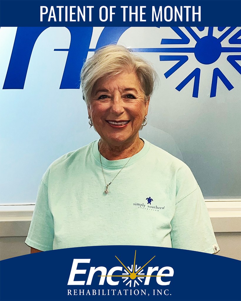 Ms. DeFoor, thank you for choosing Encore to be your rehab provider! We have been impressed with your dedication to recovery! We are proud to choose you as our Patient of the Month for Encore Rehabilitation-Foley