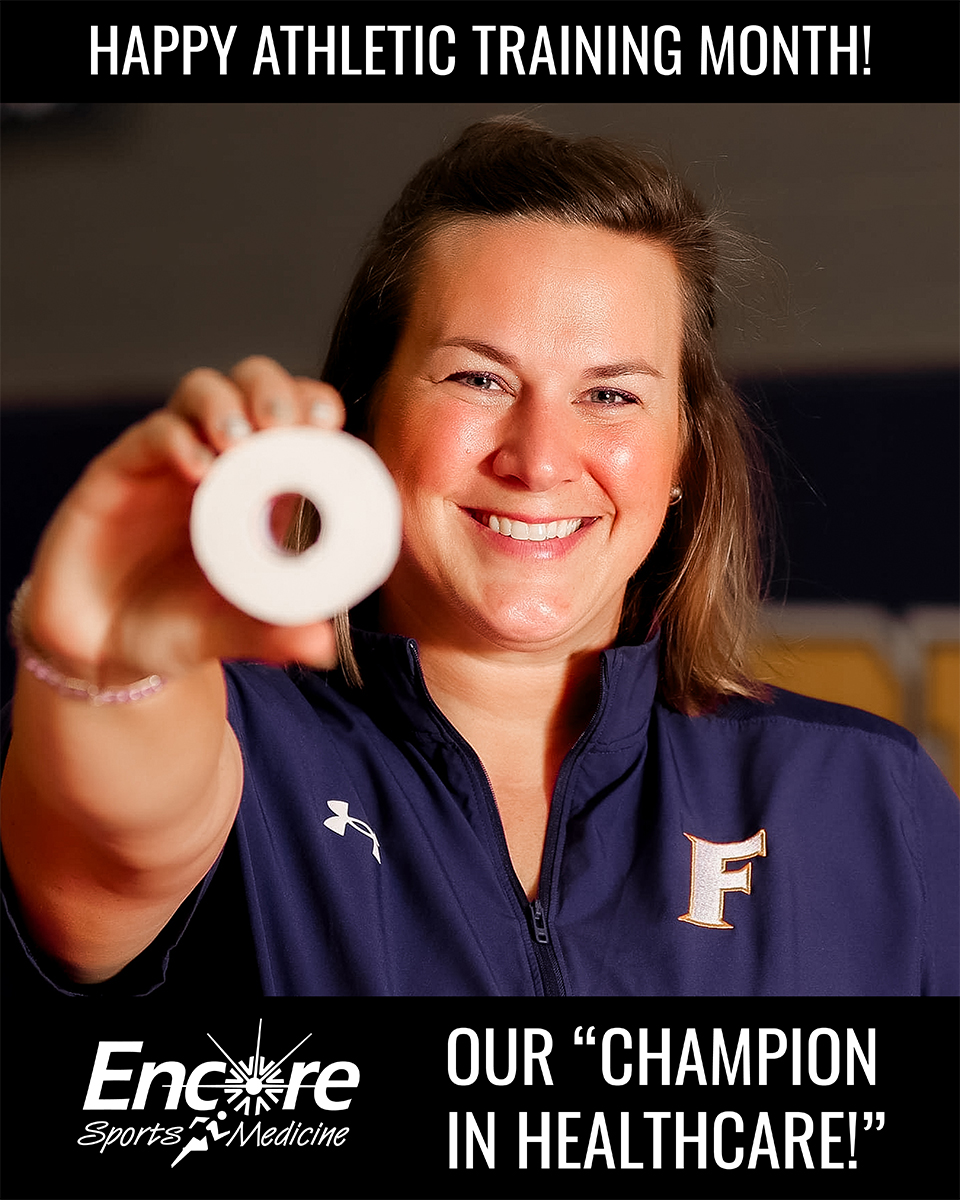 This National Athletic Training Month, we celebrate Encore Sports Medicine Athletic Trainer Lindsey Kent Walker, MS, L/ATC, for her commitment to excellence!
