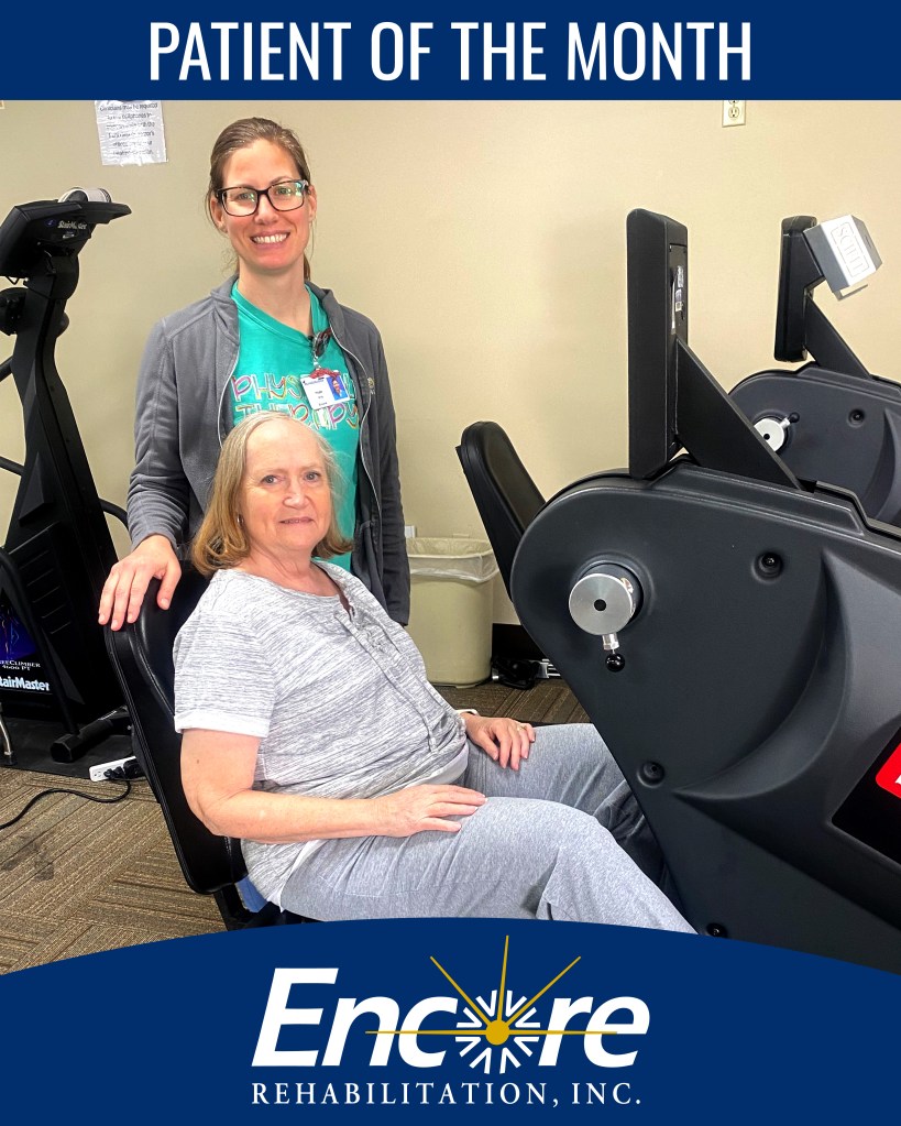 We are proud of the diligence and commitment to improve her health that Ms. Blocker showed with her Physical Therapy journey! We are proud to select her as Patient of the Month for Encore Rehabilitation-Andalusia!