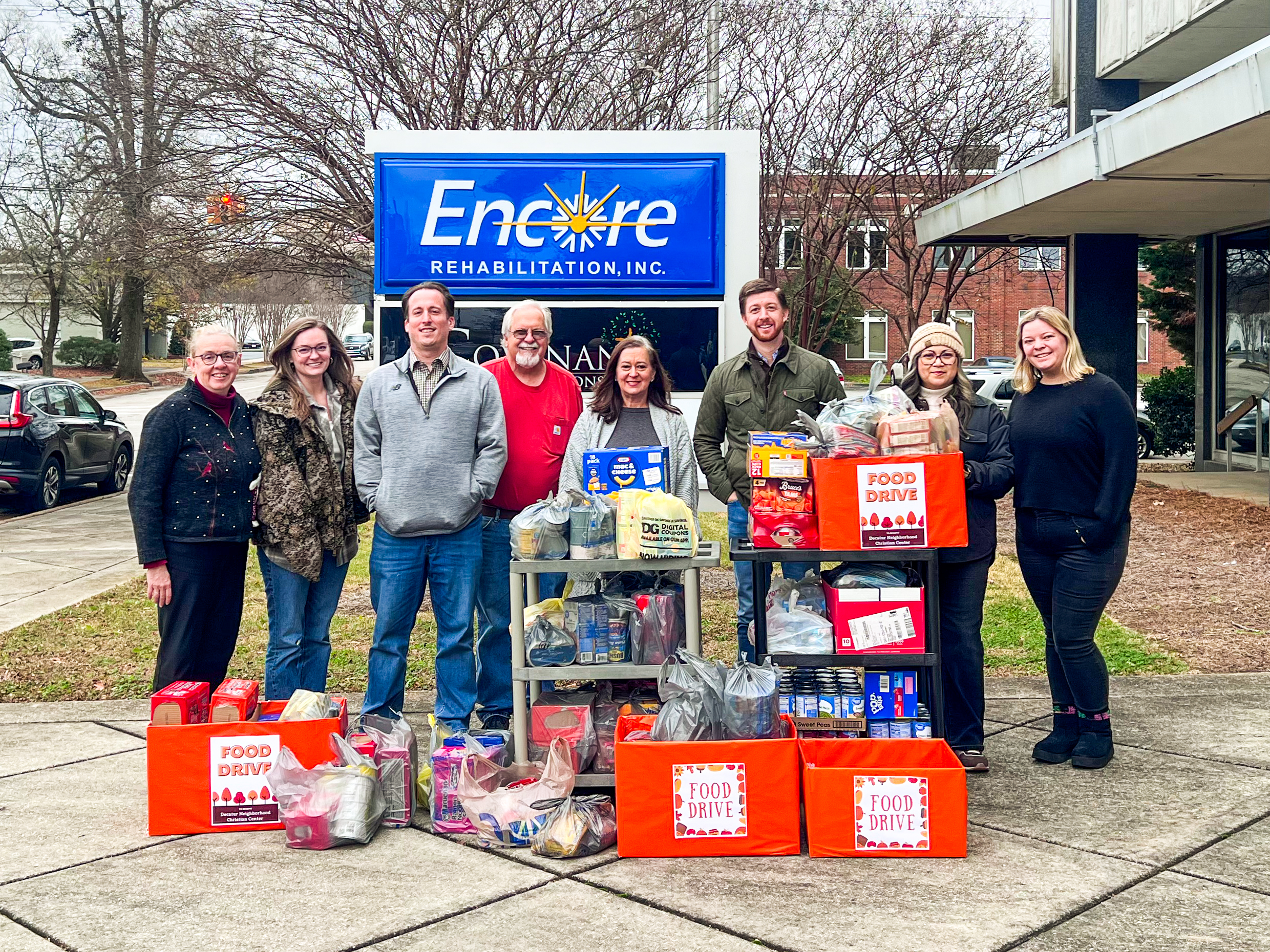 Thanks to the generosity and teamwork of our Encore Rehabilitation, Inc. Corporate Office and Decatur Central Billing employees, our 8th Annual Food Drive collected 800+ items to support families in our community.