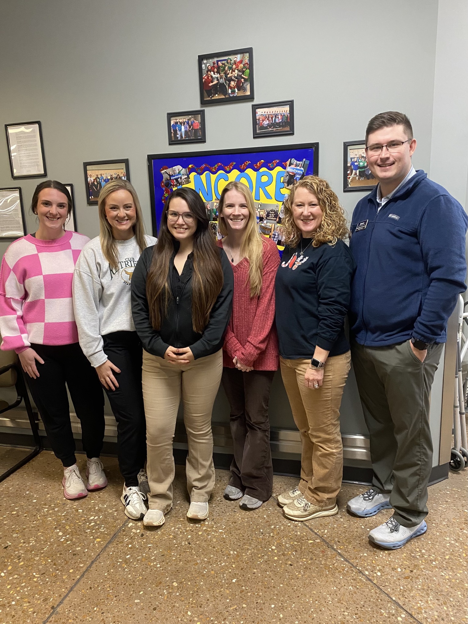 NCC representatives Tim Bolding and Sandra Pina, along with the Encore Rehabilitation Cares Committee—Rebecca Bartholomew, Bailey Padgett, Kevin Capone, Neika Birdwell, Jonathan Henderson, and Hannah Hogan.
