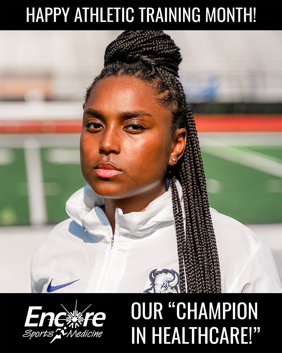 Happy National Athletic Training Month! We are proud to celebrate Encore Sports Medicine Athletic Trainer Monday Willis as a fantastic Champion in Healthcare! Monday, your dedication and commitment make a difference every day! Your passion and drive are evident in the care you provide as well as your service in the community! Thank you for all you do!