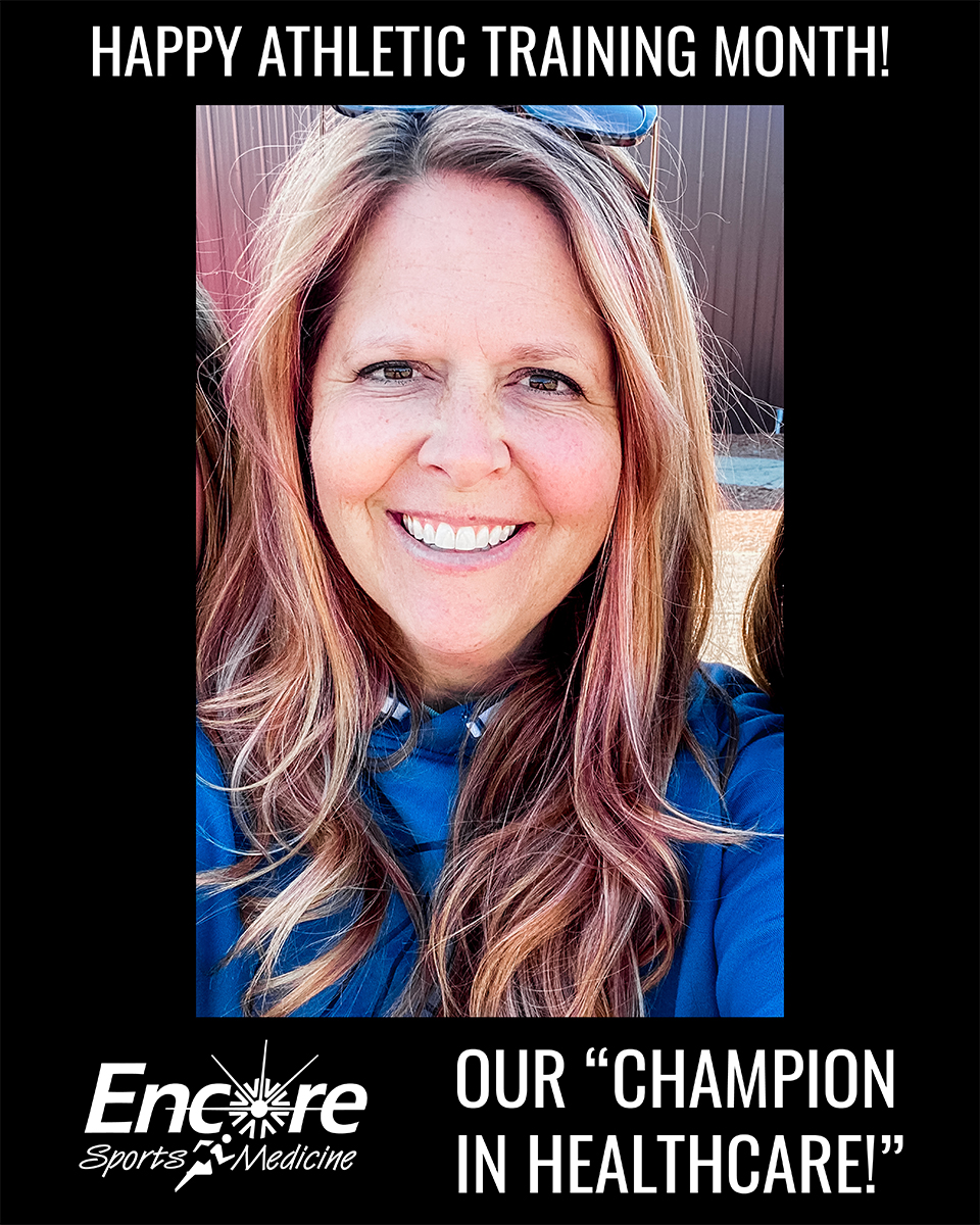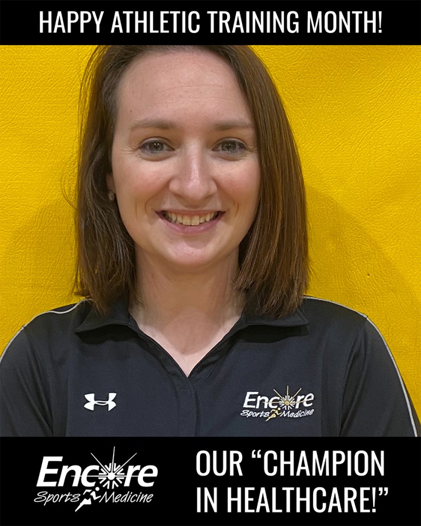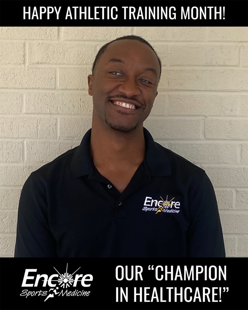 Happy National Athletic Training Month! We are proud to celebrate Encore Sports Medicine Athletic Trainer Monday Willis as a fantastic Champion in Healthcare! Monday, your dedication and commitment make a difference every day! Your passion and drive are evident in the care you provide as well as your service in the community! Thank you for all you do!