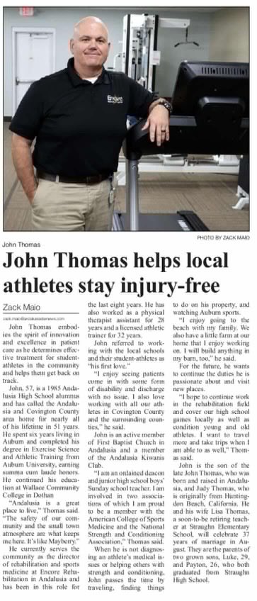 We’re proud to celebrate John Thomas, Clinic Director at Encore Rehabilitation-Andalusia, for being recognized by the Andalusia Star-News and Zack Maio. His leadership and commitment to patient care continue to make a meaningful difference in the community!