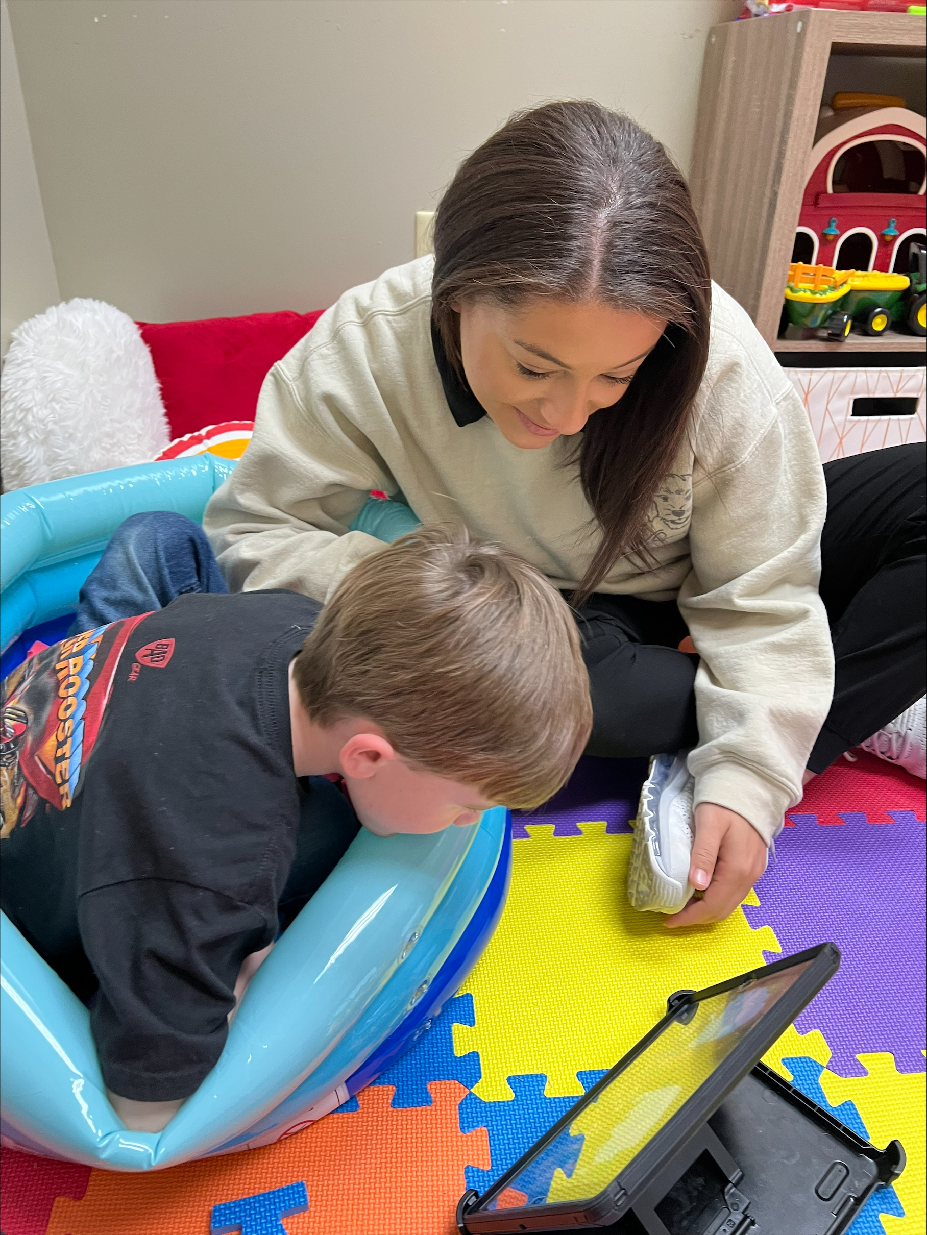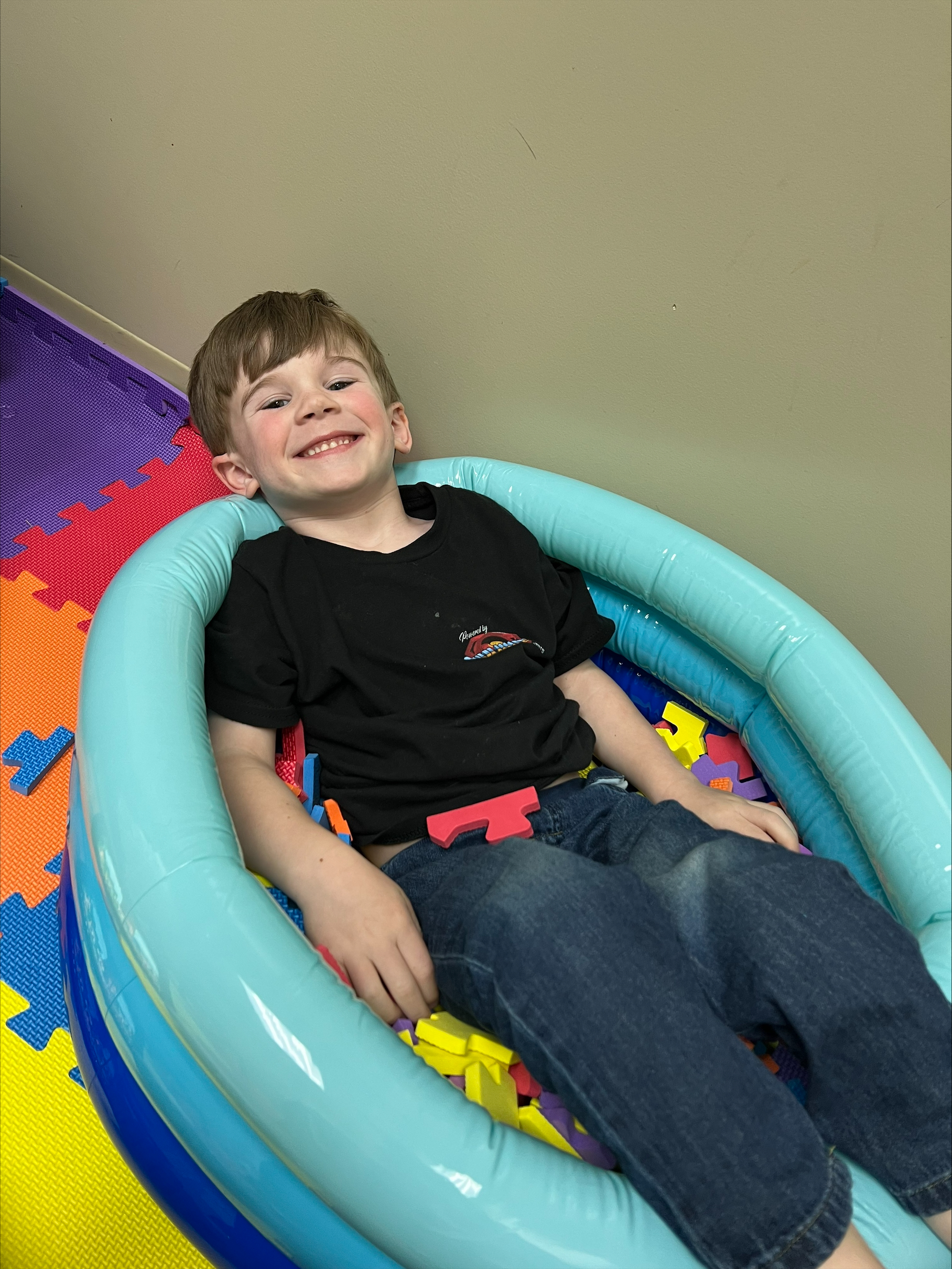 Today, we had the joy of seeing one of our young clients, Connor, light up while exploring our new room and sensory area, all while working on his speech goals. 🙂