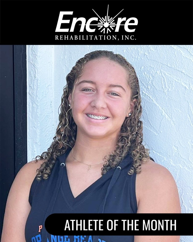 Congratulations to Justine Henderson, Athlete of the Month for Encore Rehabilitation-Orange Beach! Justine is a Junior at Orange Beach High School, where she competes in Swim and Softball for the Makos.