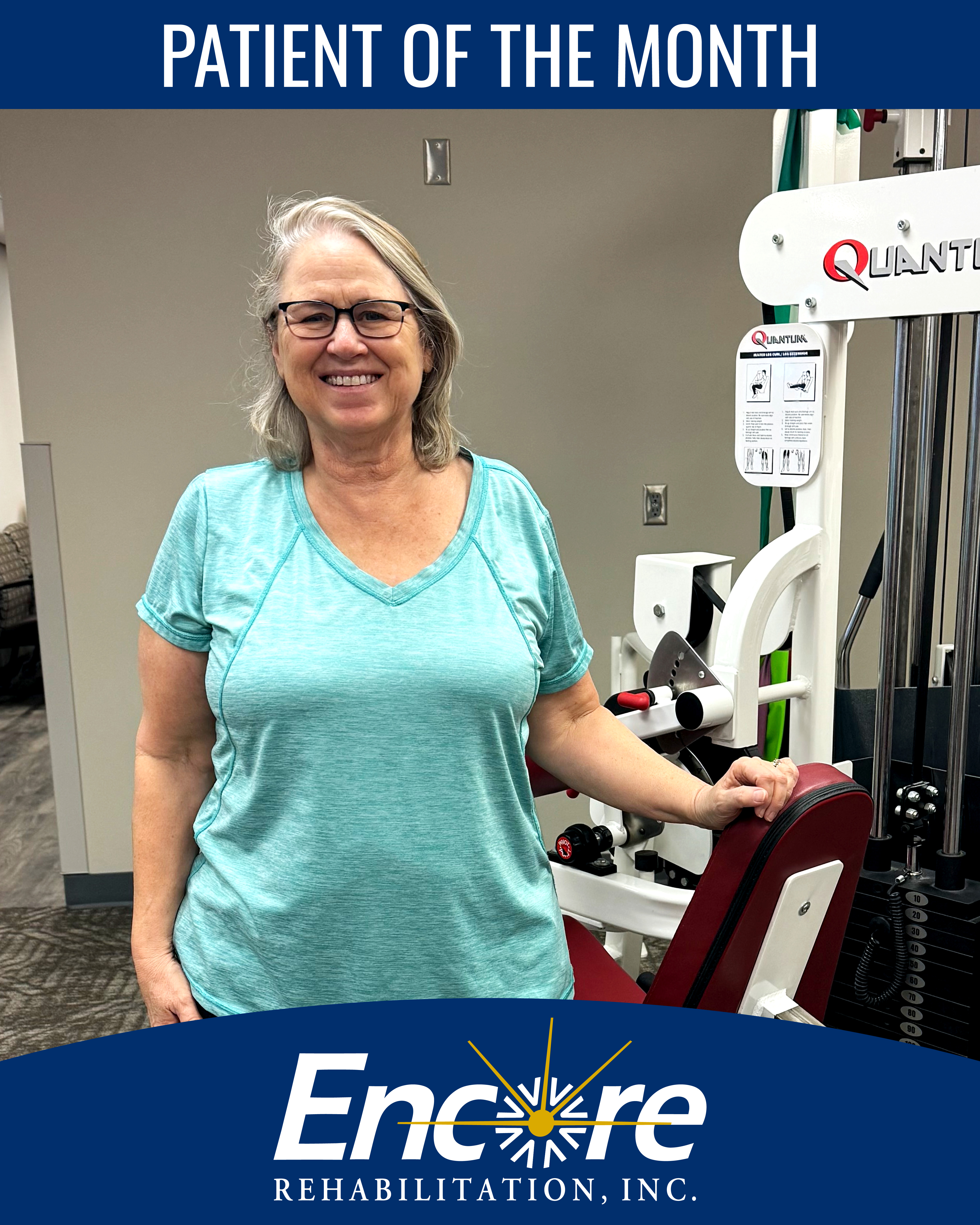 Ms. Jackson, we are proud to select you as our Patient of the Month for Encore Rehabilitation-Moulton! You have made remarkable progress and have a great mindset for wellness! We wish you the best!