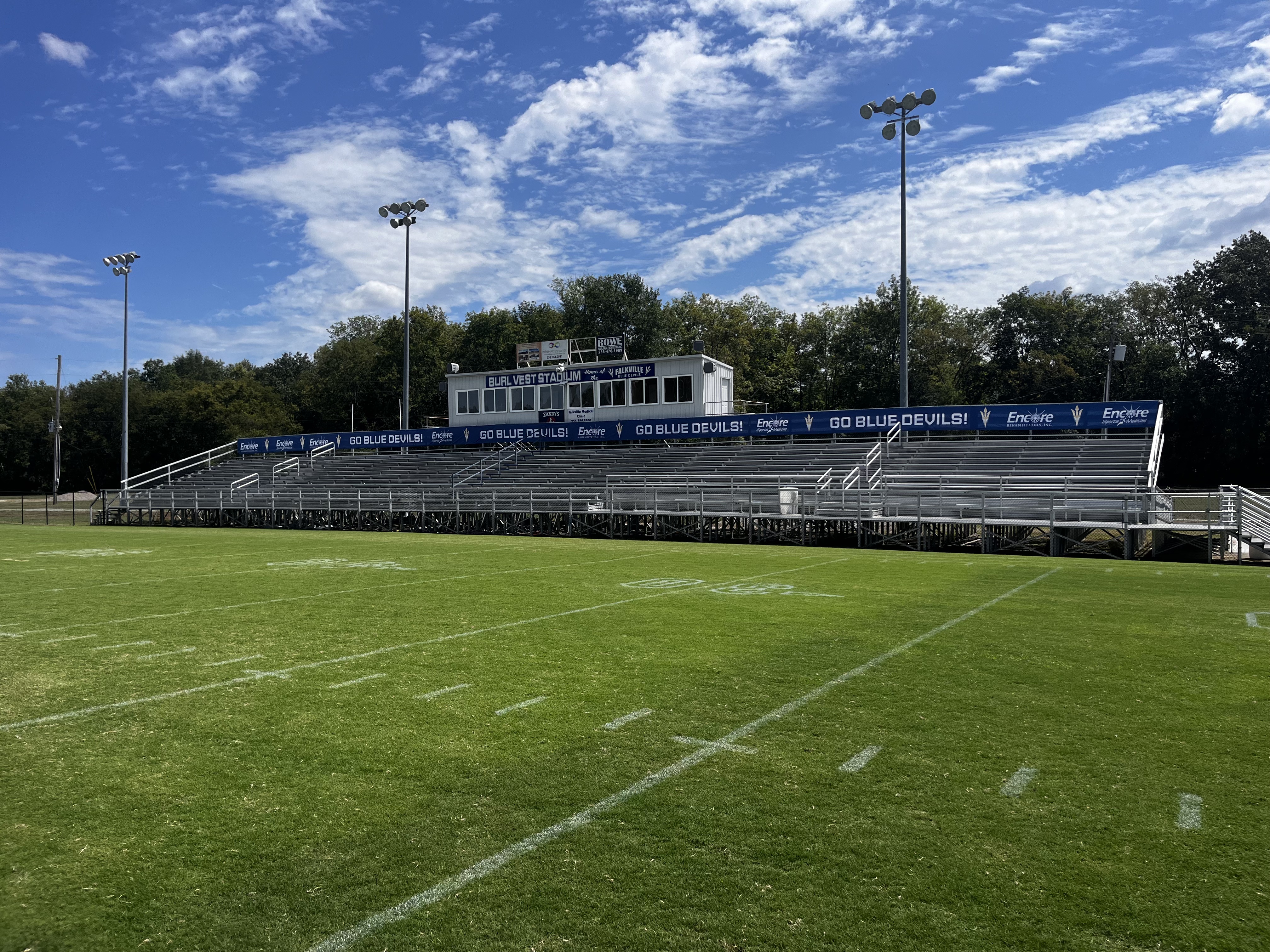 New banners for the Falkville High School Blue Devils! We wish the Blue Devils a safe and successful season!