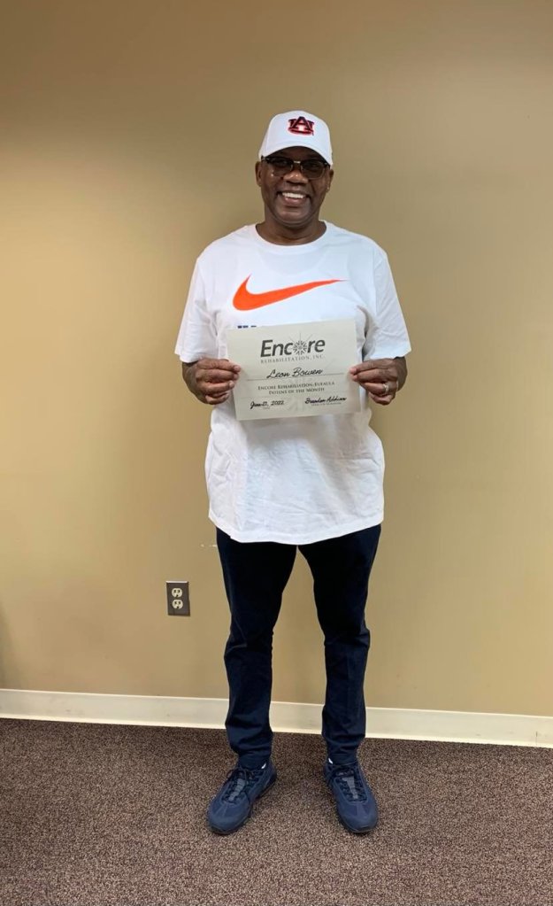 Congratulations to our Patient of the Month, Royce Hess, at Encore Rehabilitation – Haleyville! Mr. Hess came to Encore following a right hip replacement and has made incredible progress. He chose Encore Haleyville because it was close to home and he had heard great things from others in the community. We’re so thankful he trusted us with his care!