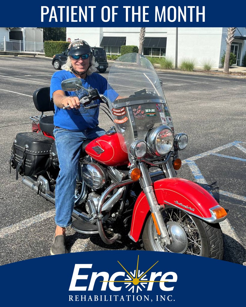 “Rehab went well with great progress! I can now ride my motorcycle and climb in and out of my jeep! I recommendEncore Rehabilitation-Orange Beach! The staff are professional and friendly!” ~Mr. Jerry Morgan, happy patient