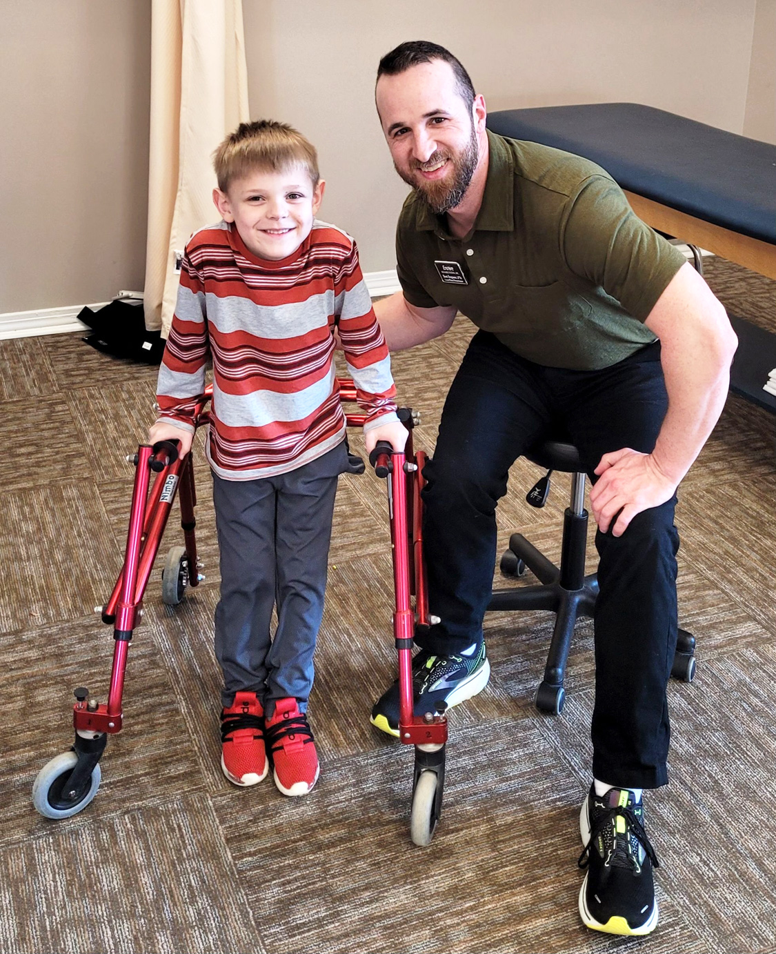 Blake is shown here with Encore Physical Therapist Assistant Brett Ferguson.