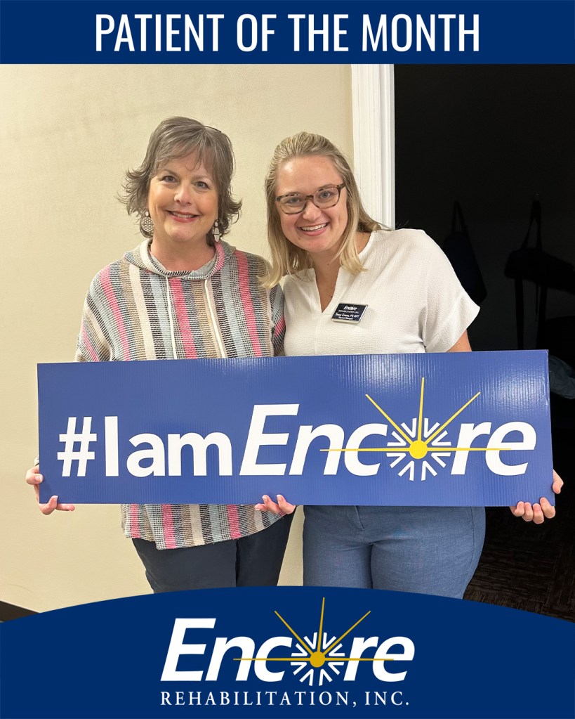 Thank you for entrusting Encore with your healthcare, Ms. Hitchcock! It was our pleasure to be your rehab provider! We are proud to select you as Patient of the Month!