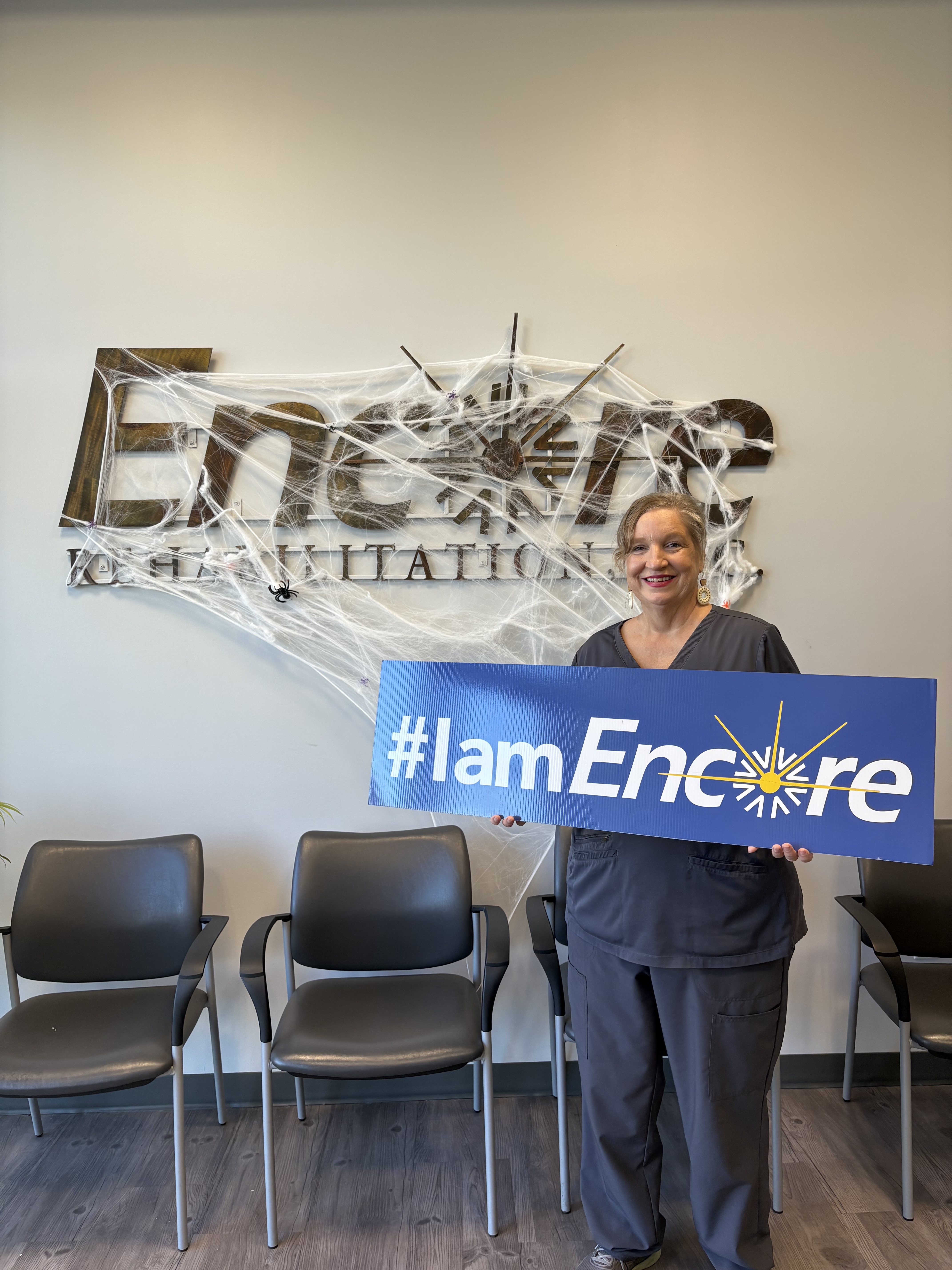 Ms. Blakeslee, we could not be more proud of your hard work, dedication and positive attitude! Thank you for choosing Encore to be your rehab provider!