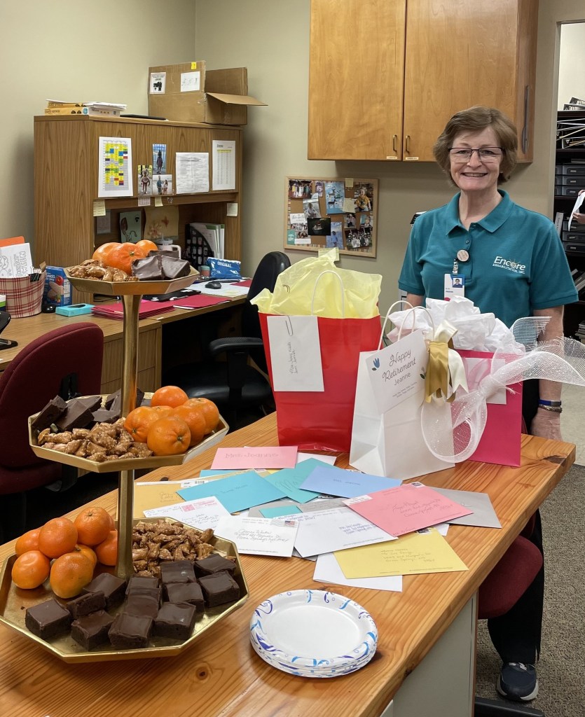We celebrated Ms. Jeanne as she spent her last day as the Pediatric Coordinator and outpatient physical therapist. She will continue to provide school based services for the remainder of this school year.