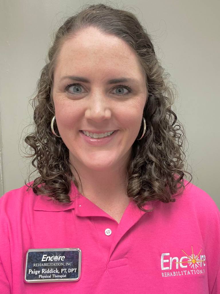 Paige is the Clinic Director at Encore Rehabilitation-Phenix City. She is a graduate of the University of South Alabama Physical Therapy School and has been practicing for over three years. She is Certified in Dry Needling and enjoys treating all diagnoses though she has a heart for athletes since she is a former collegiate softball player. Outside of work, Paige enjoys spending time with her husband and her sons outdoors.