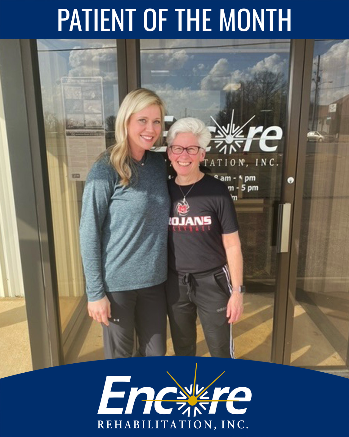 Ms. Broderick, we are extremely proud of you! Your dedication to your rehabilitation has resulted in great results! We are delighted to recognize you as Patient of the Month for Encore Rehabilitation-Pelham! We wish you continued good health!