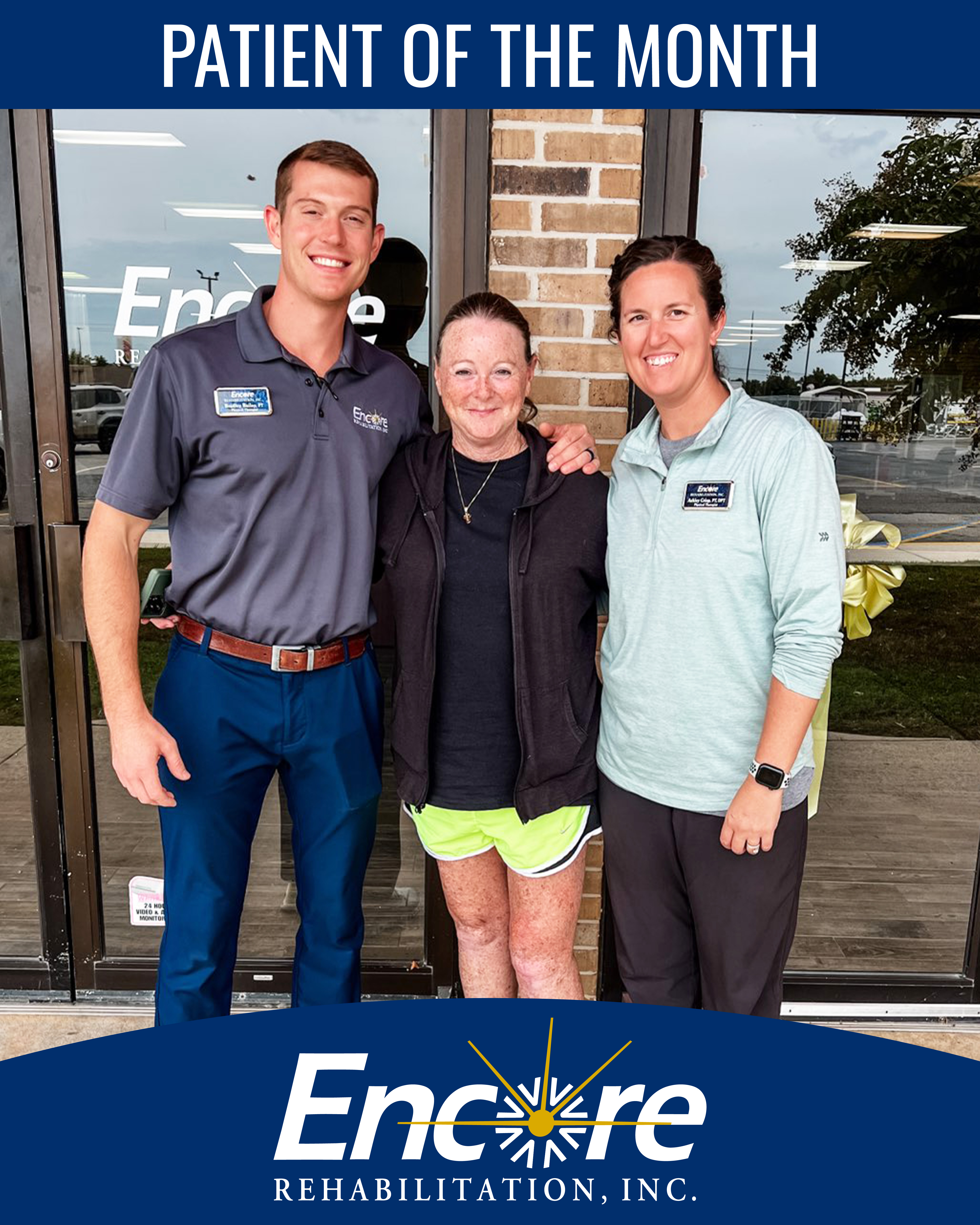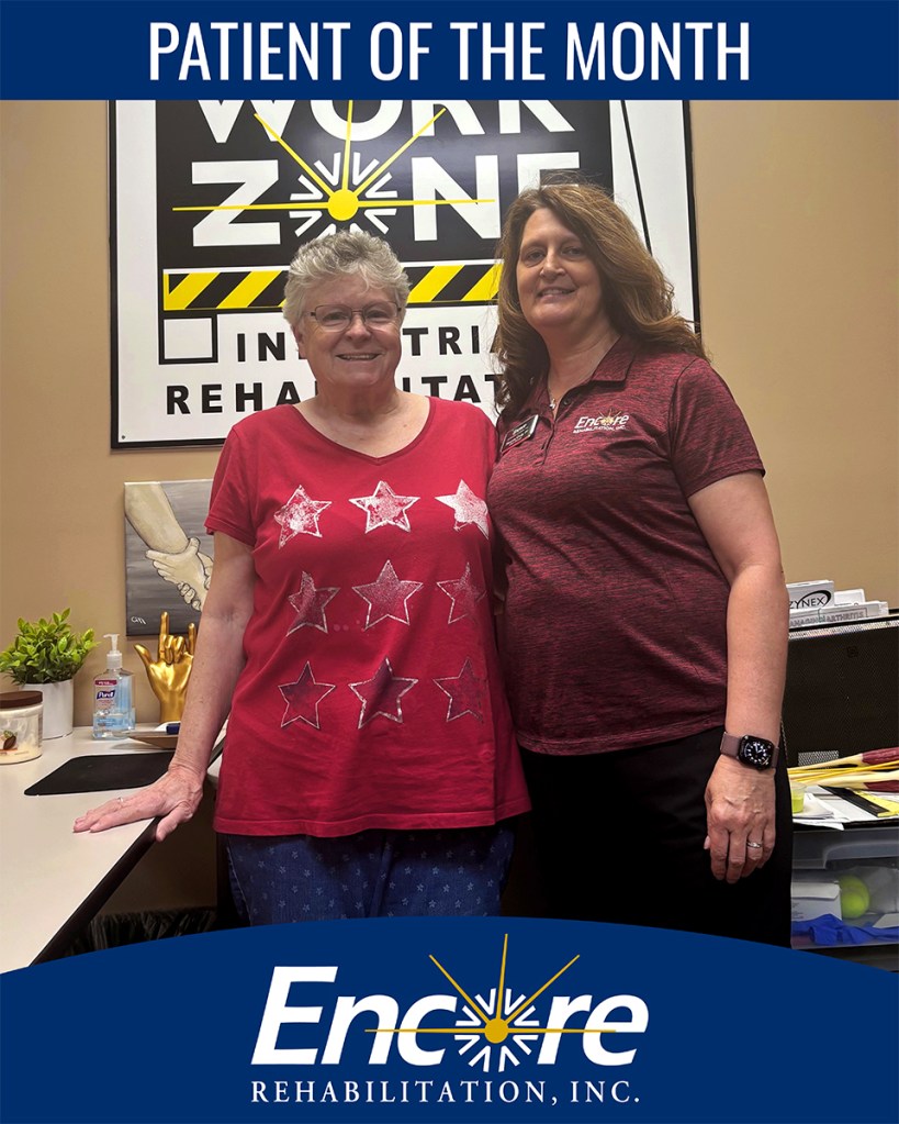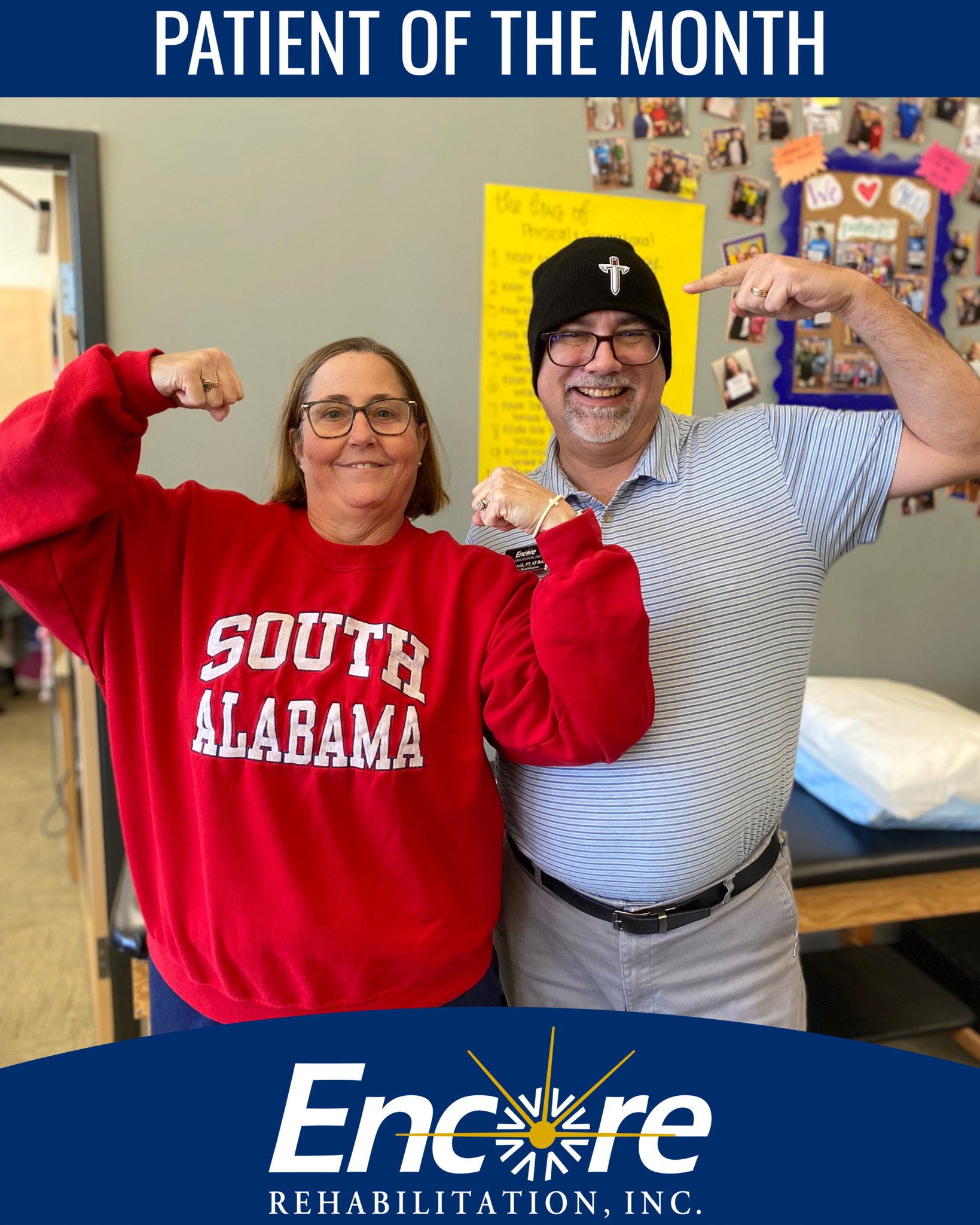We are proud of the diligence and commitment to improve her health that Ms. Blocker showed with her Physical Therapy journey! We are proud to select her as Patient of the Month for Encore Rehabilitation-Andalusia!