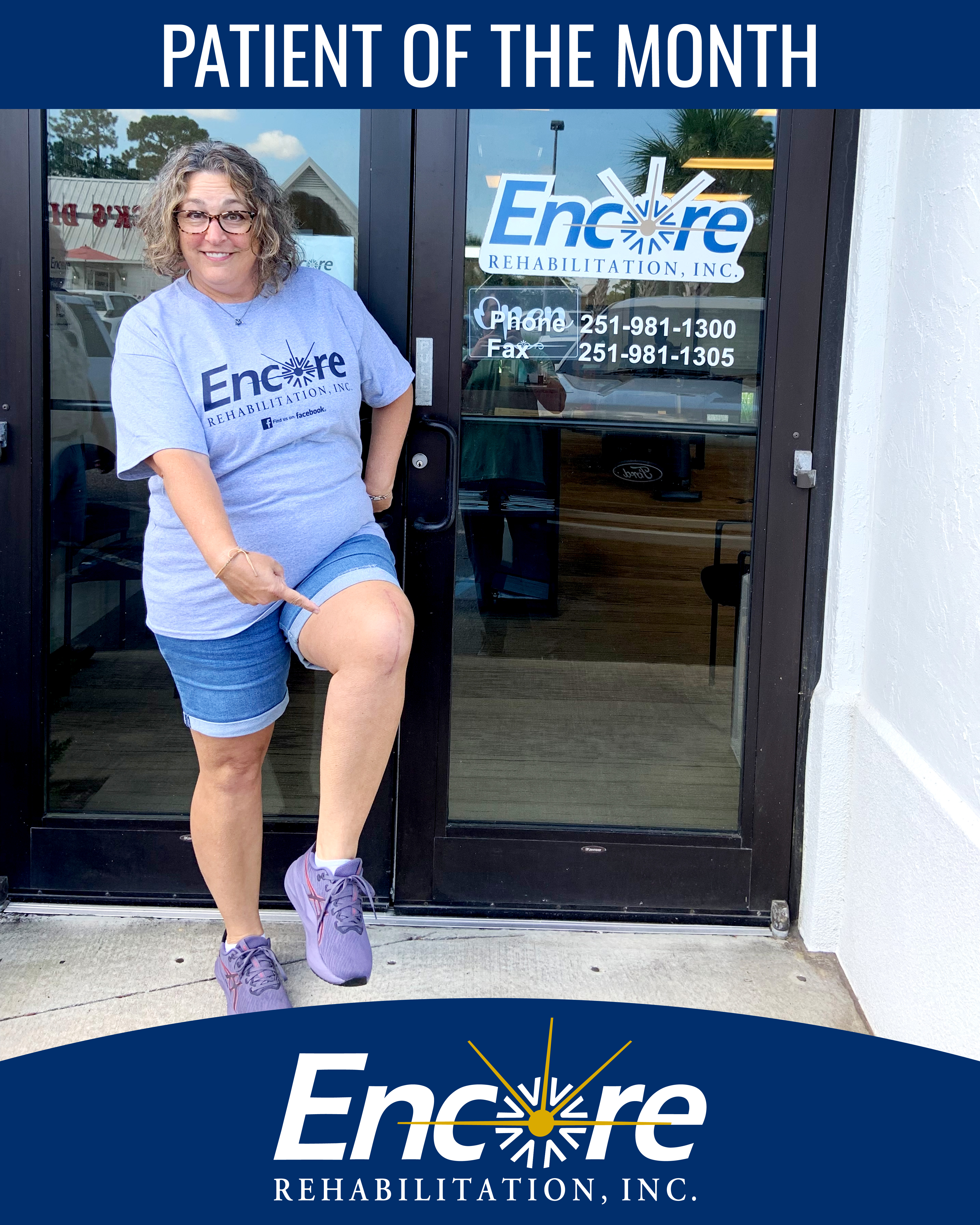 We are excited to select Kelly Eades as our Patient of the Month at Encore Rehabilitation-Orange Beach! Ms. Eades has demonstrated determination and persistence in her rehab, and we are so proud of her!