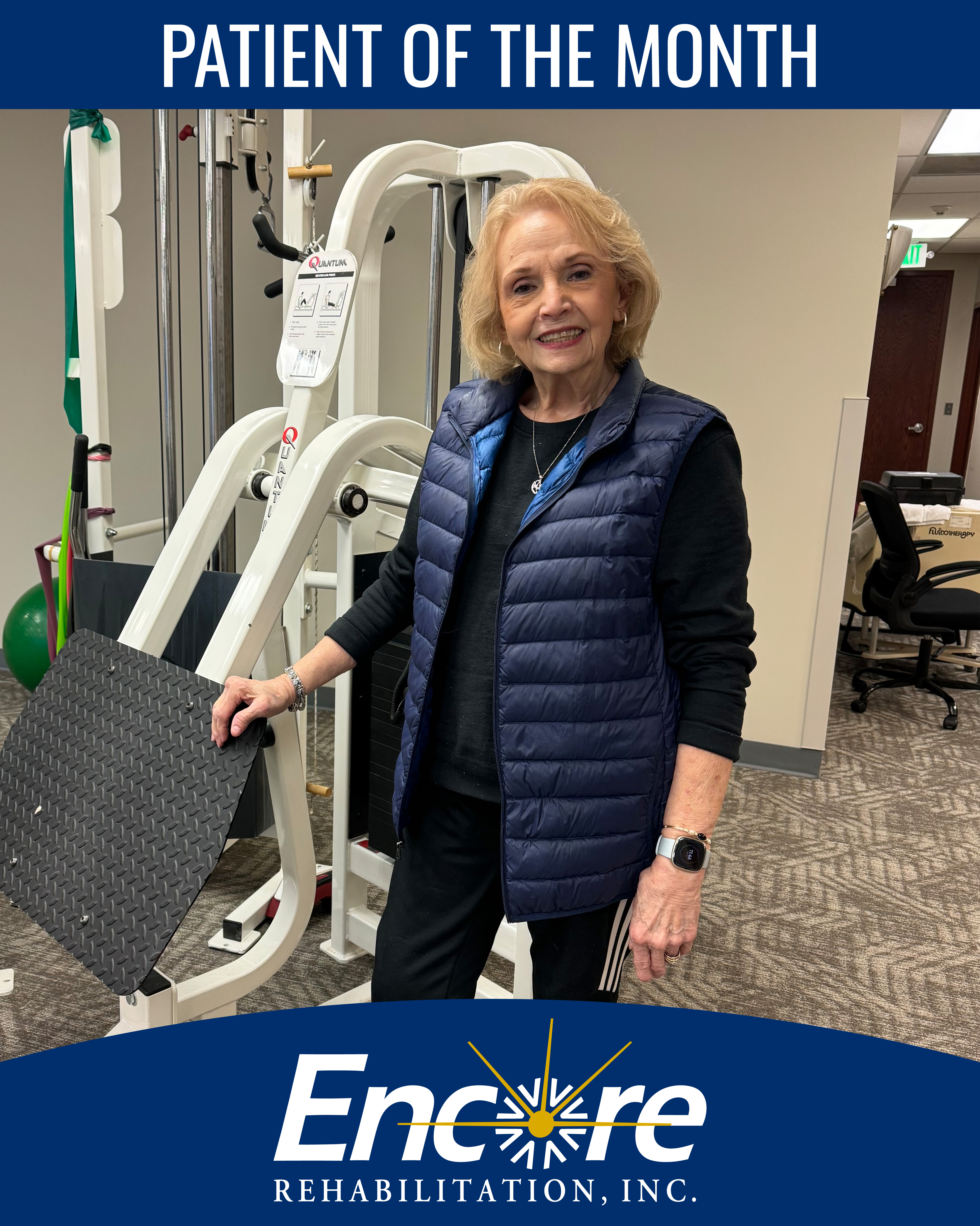 After her total knee replacement, Stephanie Phillips chose Encore to be her Physical Therapy Provider. We are pleased to select her as our Patient of the Month for the Andalusia clinic!