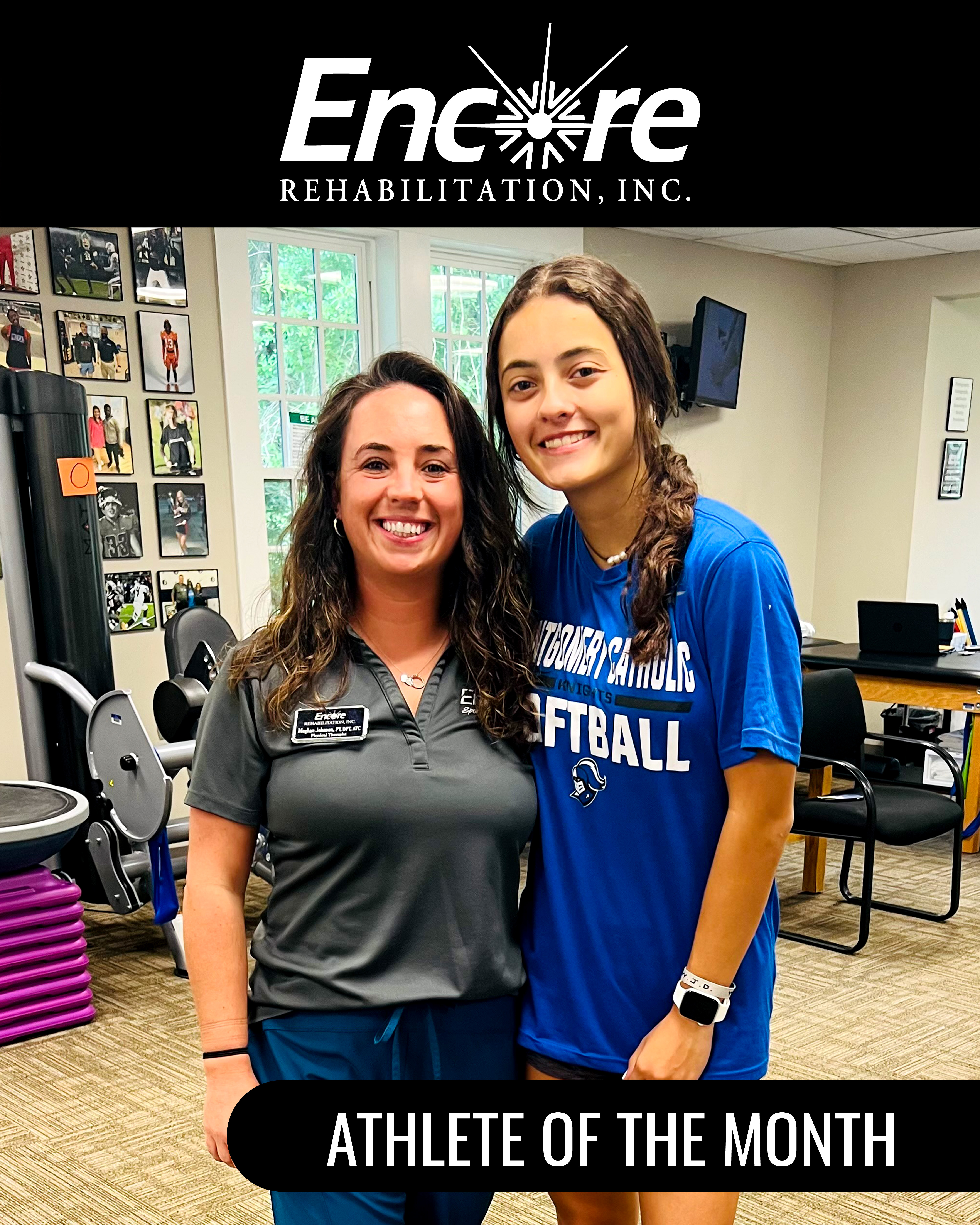 Marley had posterior labral tear in her arm from volleyball and cheer. She underwent surgery and then started Rehabilitation at Encore Rehabilitation – Andalusia! Occupational Therapist Ethan Powell worked with Marley on regaining her range of motion and upper extremity strengthening. Now, Marley has full range of motion and strength back in her arm!